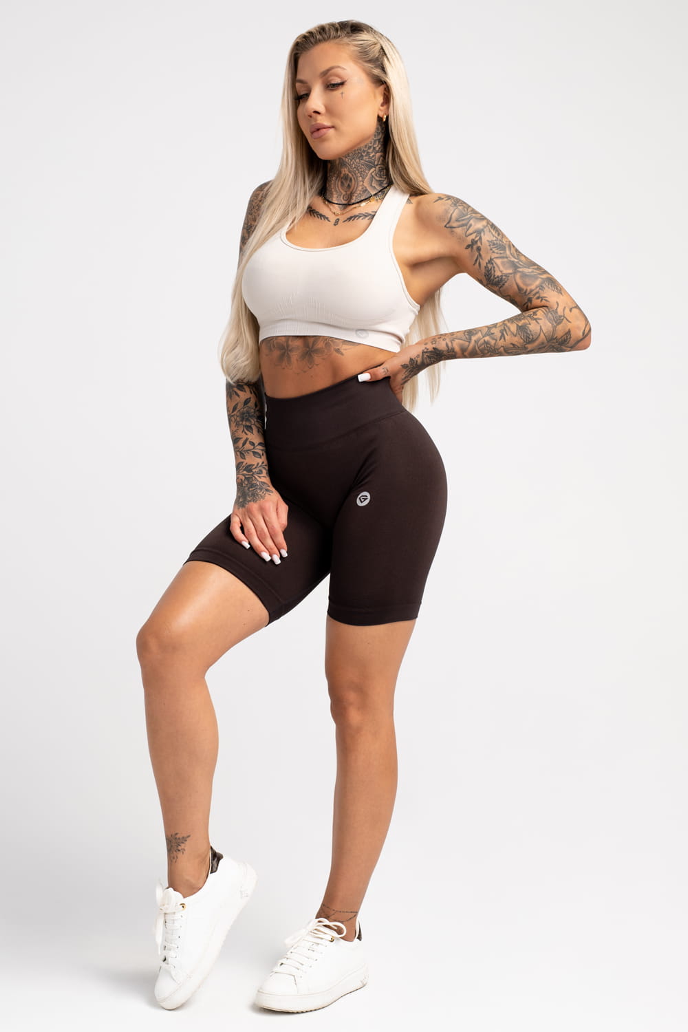 Pantaloni scurți flexible fără cusături, de culoare brownie.