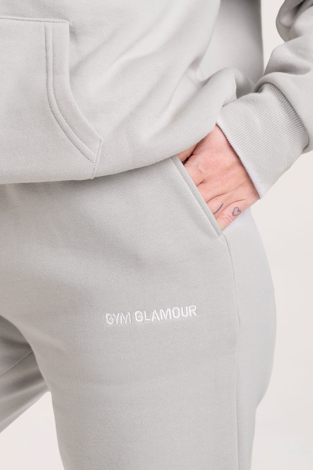 - Pantalonii au două buzunare practice și logo-ul Gym Glamour brodat.