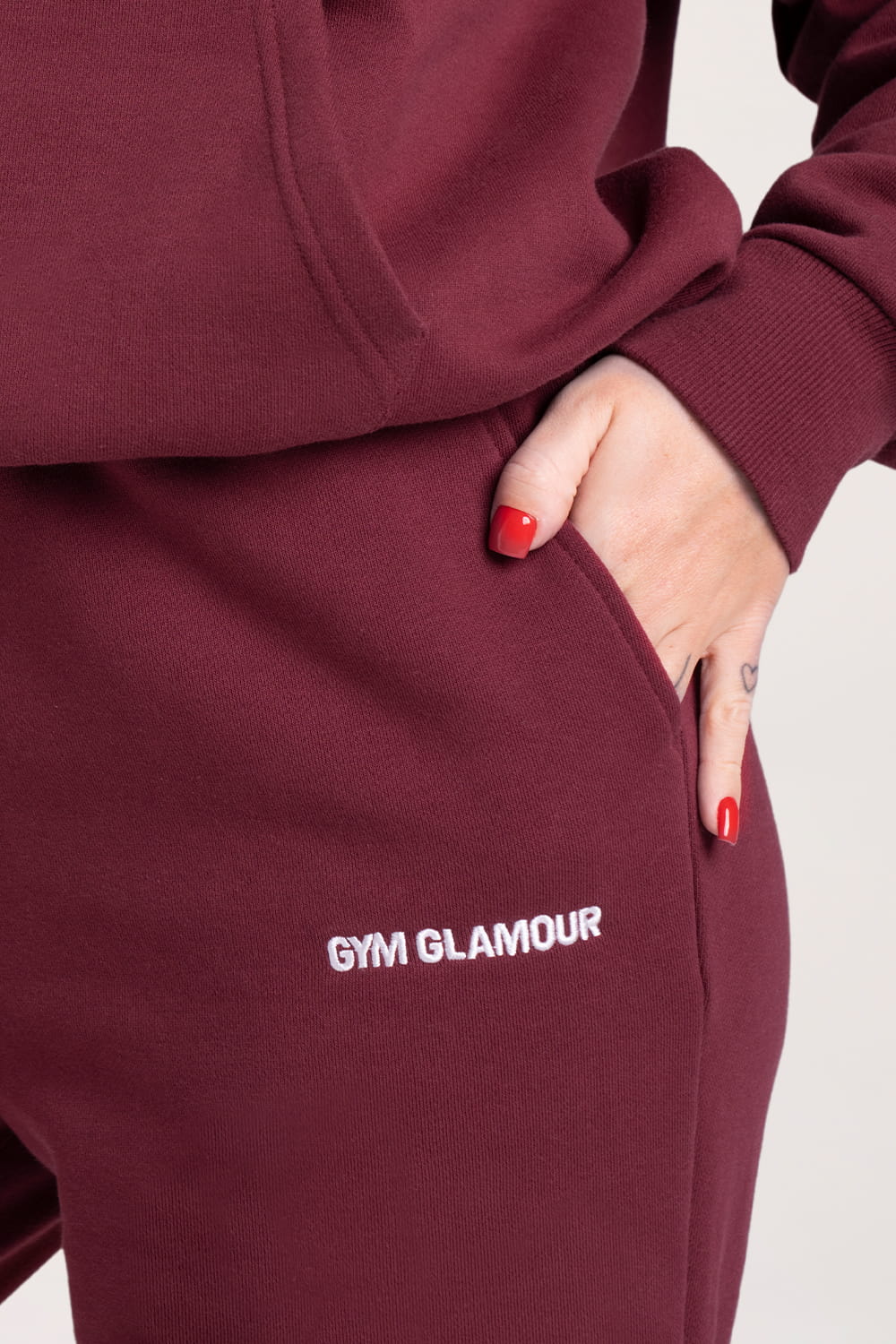 - Pantalonii au două buzunare practice și logo-ul Gym Glamour brodat.