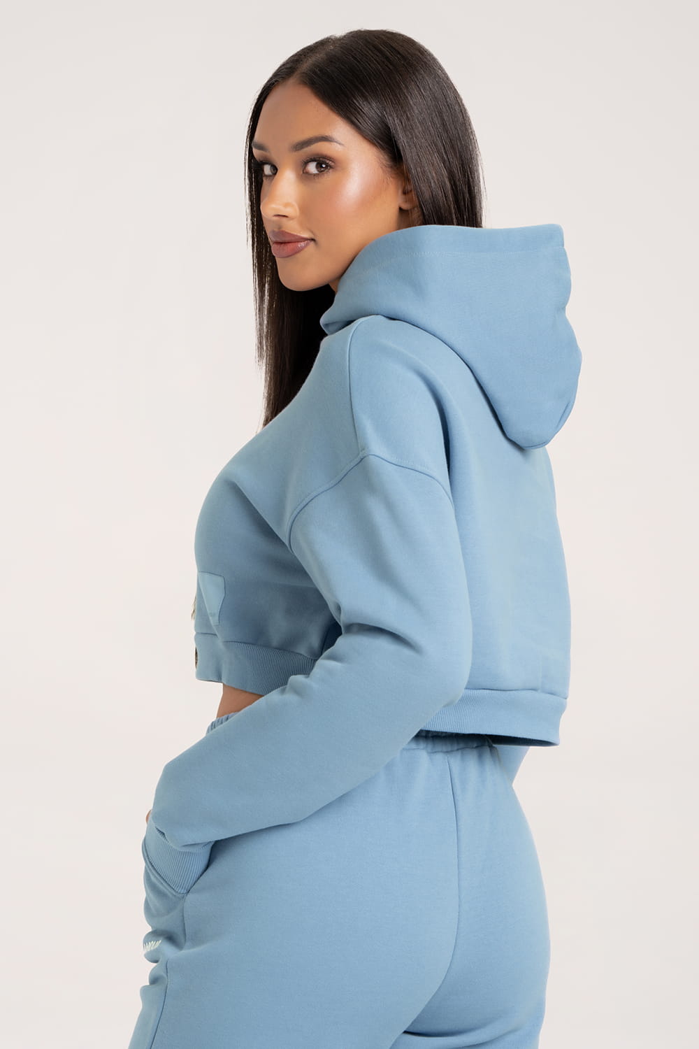 Bluza scurtă cu glugă, cu o croială oversize, decorată cu un petic minimalist cu logo pe lateral. Confecționată dintr-un tricot de bumbac plăcut la atingere. Banda elastică din talie face ca bluza să se adapteze ușor siluetei și îi oferă un caracter modern. Disponibilă în nu mai puțin de 12 culori. Se potrivește perfect cu pantalonii de trening și șorturile din colecția College – aceeași culoare, un set ideal. Este potrivită atât pentru purtarea zilnică, cât și pentru sală.