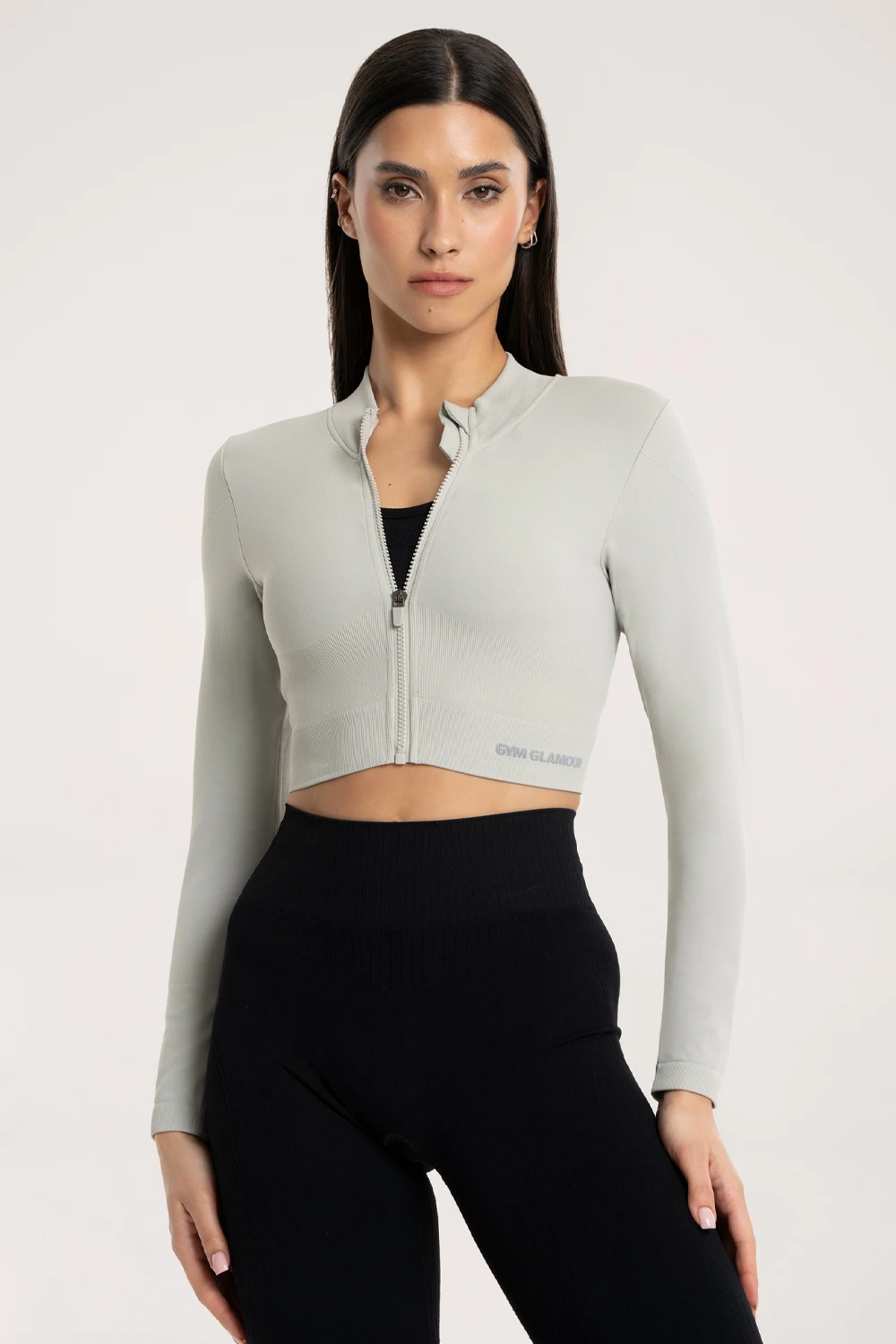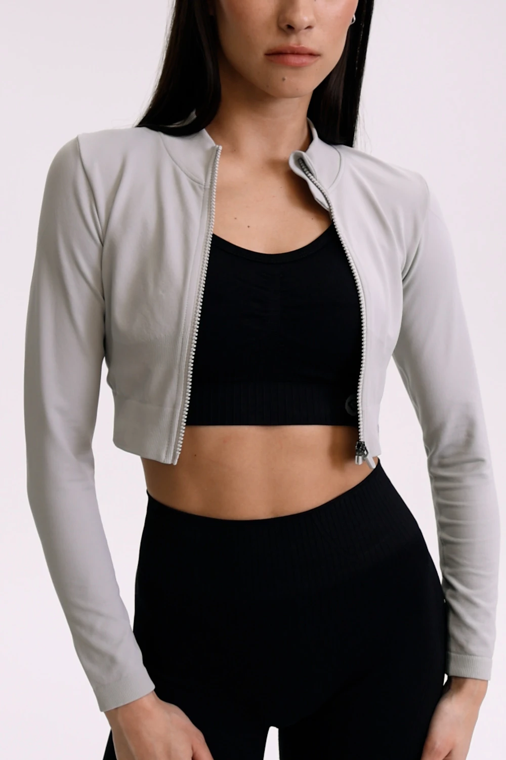Bluză fără cusături cu fermoar platinum