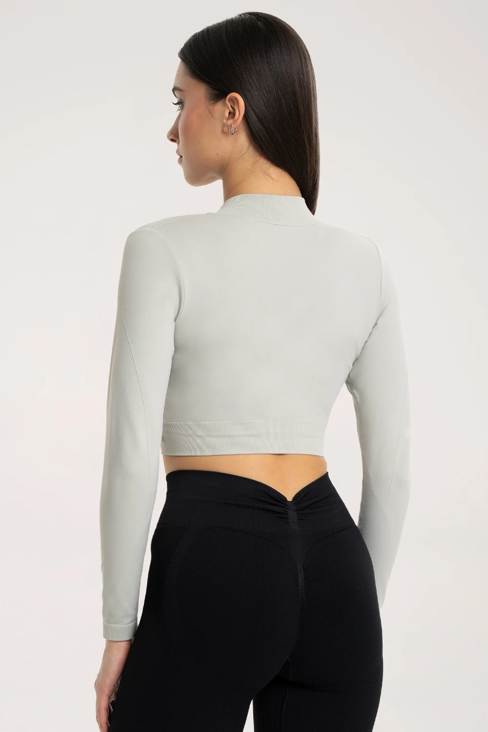 Bluză fără cusături, cu fermoar și mâneci lungi - o îmbinare a stilului modern cu mularea și funcționalitatea.